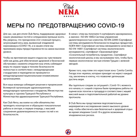 Для нас, как для отеля Club Nena, поддержание здоровья В связи с этим мы получили 4 сертификата одновременно,